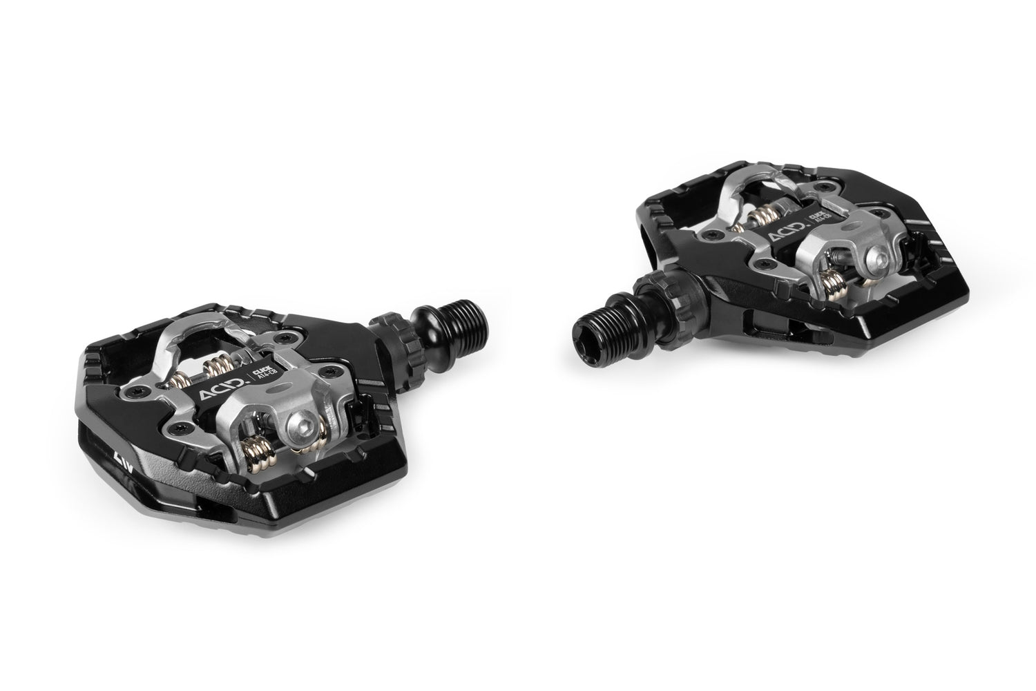 Das ACID Pedale CLICK A14-CB MTB überzeugt durch einen Aluminiumkörper. Mit einem beidseitigen SPD-kompatiblen Klick-Mechanismus ermöglicht es eine schnelles Ein- und Ausklicken. Zudem bietet die große Standfläche zusätzliche Halt. Mit gedichtete Industrielagern sowie eine robusten CroMo-Achse überzeugt es durch Langlebigkeit und geringes Gewicht. Die flache Bauweise und die angefaste Kante verhindert das Hängenbleiben an Steinen oder Wurzeln, für maximale Sicherheit auf allen Trails.