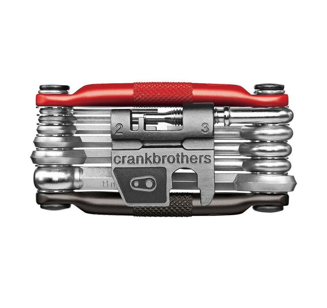 Klein, handlich, funktional und limitiert: Das Multi-17 von Crankbrothers in schwarz ist ein Fahrrad-Multitool mit 17 Werkzeugen aus 6150 High-Tensil Stahl. Am Multi-17 findet ihr viele verschiedene Sechskant-, dazu einen Schlitz- und Kreuzschraubenzieher, Speichen- und Maulschlüssel, Innensechsrundschlüssel 25 und einen Kettennieter, welcher sogar gerissene Ketten wieder verschließen kann.