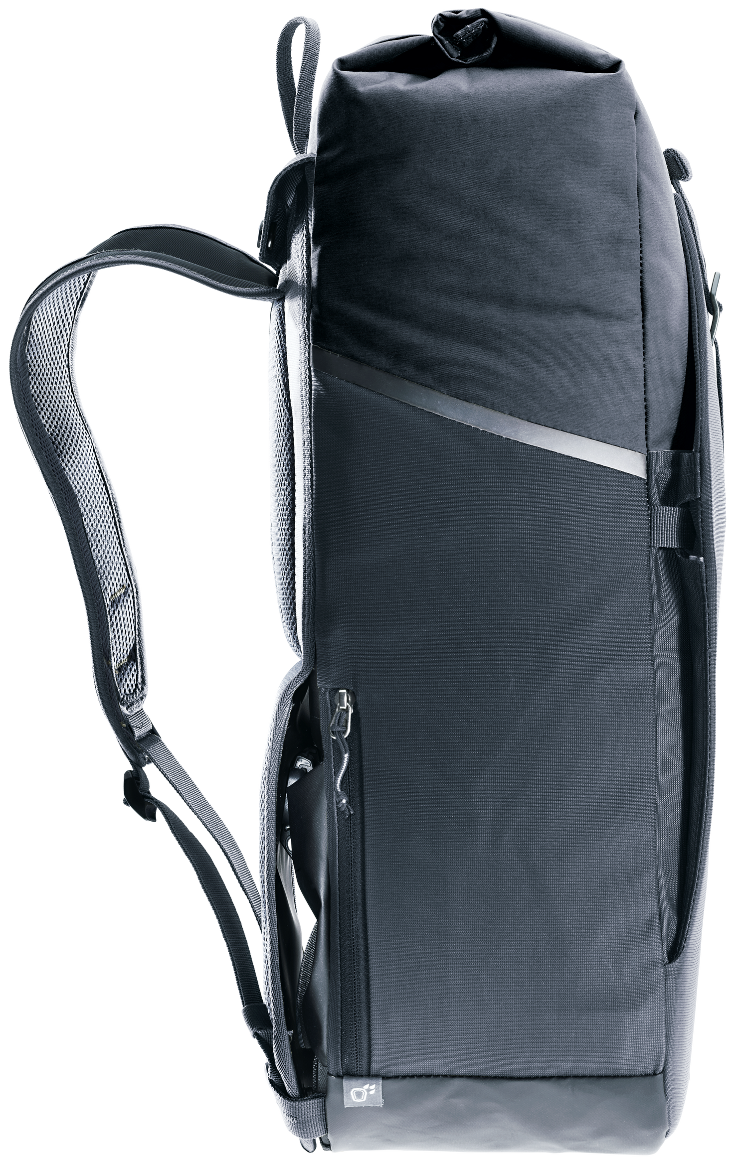 Dank einzigartigem Klappmechanismus wird aus praktischer Hinterradtasche im Handumdrehen ein komfortabler Rucksack. Die mit Druckknöpfen fixierbare Rückenplatte lässt sich mittig nach oben oder unten klappen und legt so entweder die BagFix-Halterung zur Fixierung am Gepäckträger oder die ergonomischen Schulterträger zum Tragen frei. Der Roll-Top-Zugang mit Schnalle, die universelle Befestigungsmöglichkeit der Deckelkonstruktion und weitere Organisationseinheiten ermöglichen einen schnellen Zugriff und praktische Verstaumöglichkeiten.