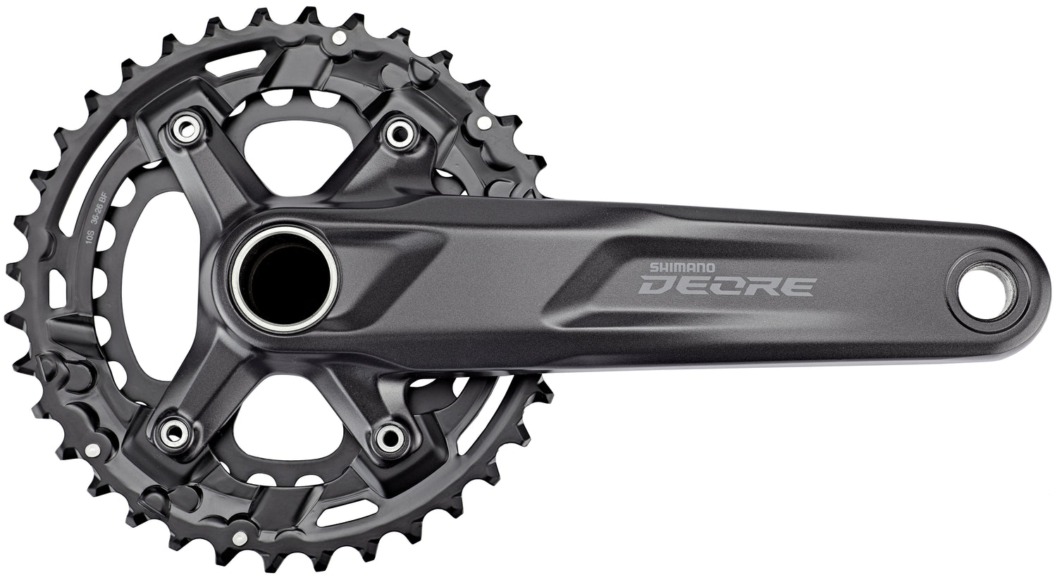 Die MTB-Kurbelgarnitur SHIMANO DEORE FC-M4100-2 sorgt für präzise und verlässliche Schaltvorgänge bei 2x10-Antrieben. Diese zweiteilige Kurbelgarnitur bietet eine Abstufung von 36-26 Z und eine Kettenlinie mit 51,8 mm.
