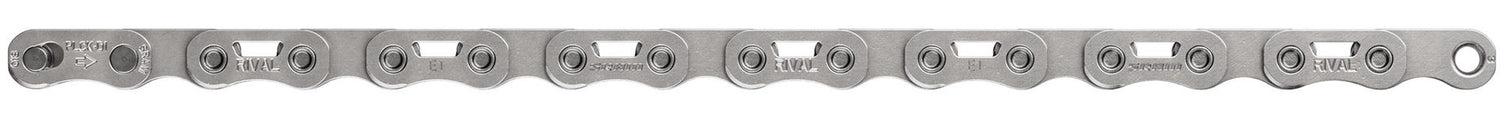 Wir haben unsere stabilste Rival-Kette genommen und sie noch leichter gemacht. Die Aussparungen in den Aussenlaschen der Flattop-Kette reduzieren das Gewicht und zugleich erhöht das hartverchromte Finish die Haltbarkeit wenn du unter Last die Gänge durchschaltest. Diese Kette ist bereit für jede noch so lange Strecke.
