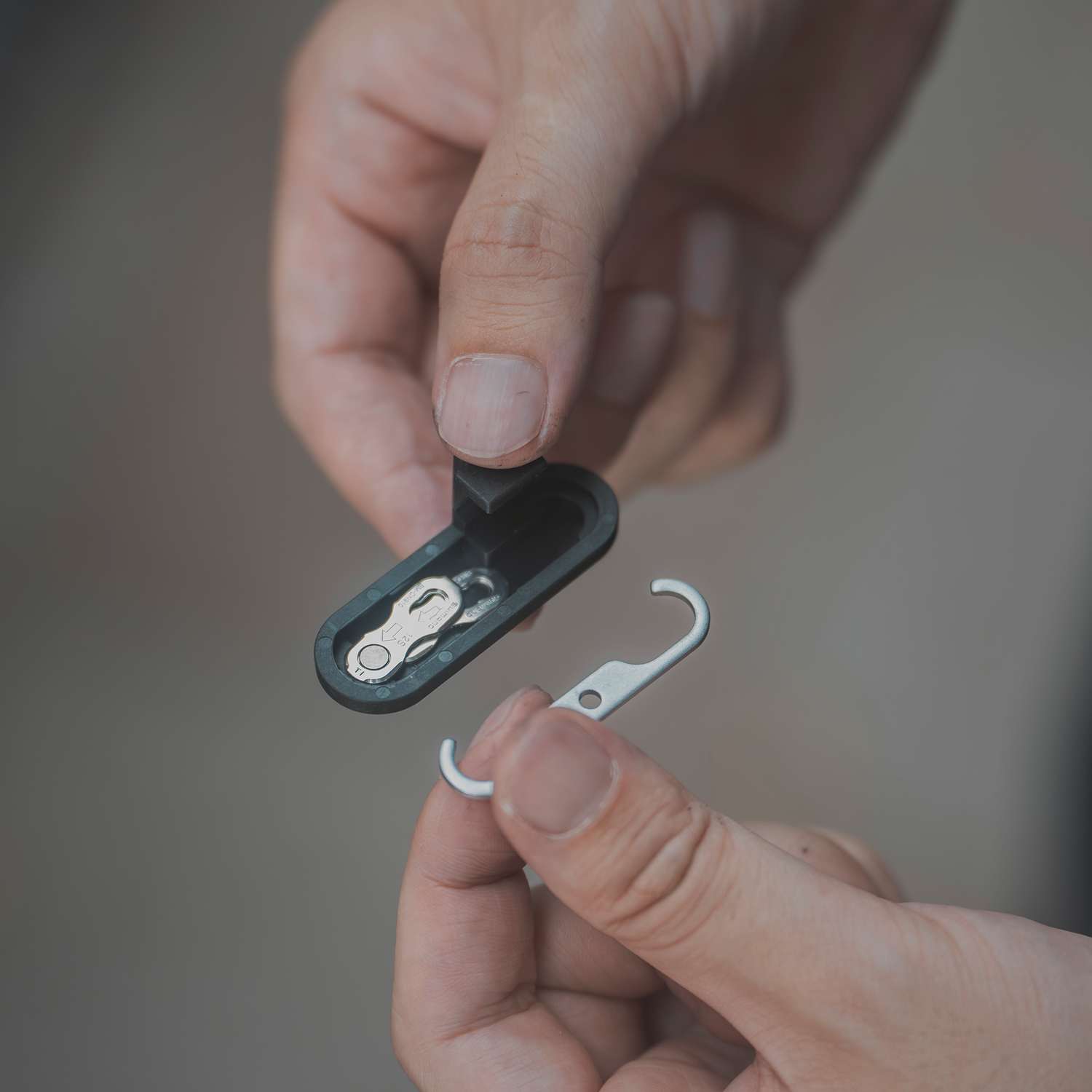 - Materialien: 7075er Aluminium (Kettennieter), Nylon (Tasche)